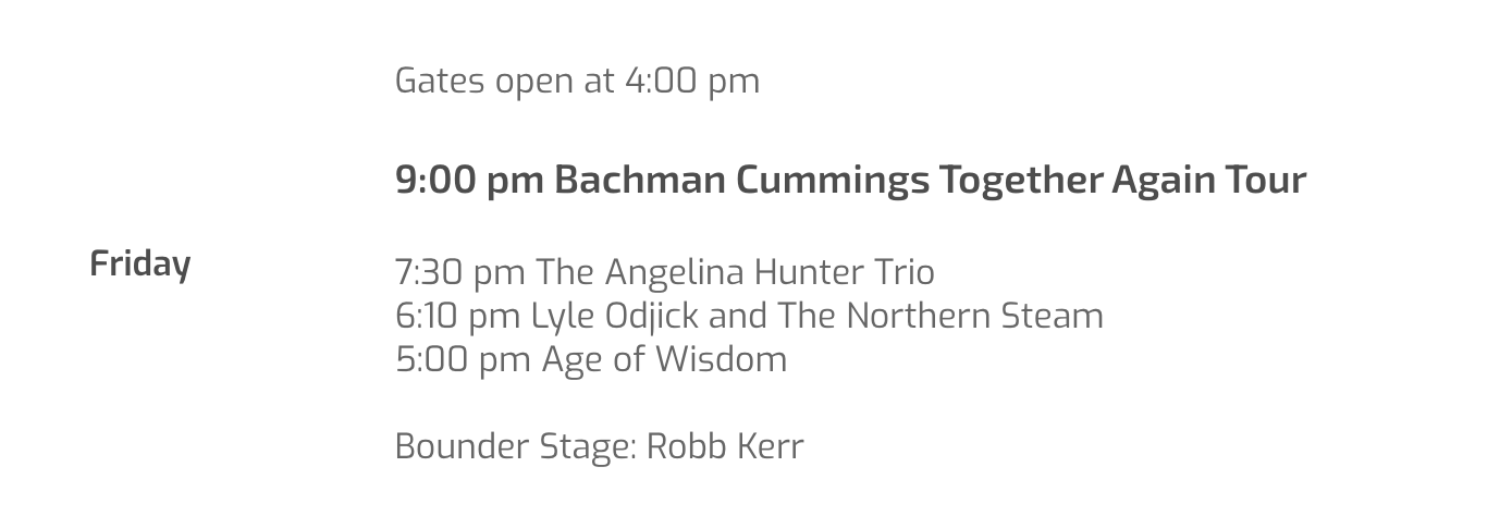 We will be sharing the stage with some of the most legendary Canadian acts in history!