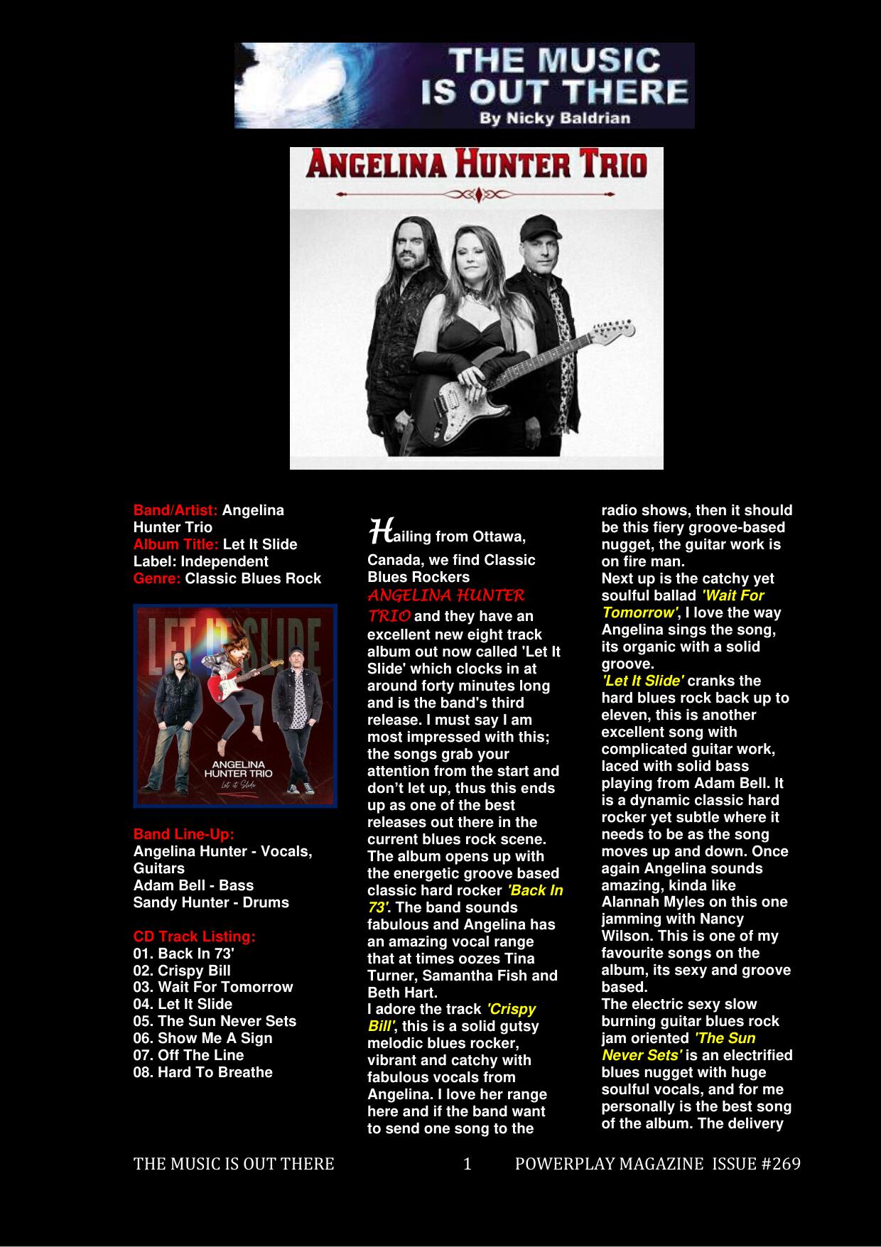 “Let it Slide” album review in Powerplay magazine By angelinahuntertrio | 15th Dec 20232nd Jan 2024 Share this: Click to share on X (Opens in new window) X Click to share on Facebook (Opens in new window) Facebook Like Loading... Related